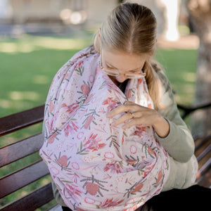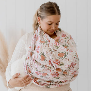 This native Gumnut Blossoms print is a beautiful gender neutral design for girl or boy mamas.Made from incredibly soft, breathable and stretchy fabric.