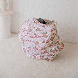 Our multi-use cover works as a breastfeeding cover, car seat canopy, shopping trolley cover, high-chair cover, and infinity scarf—so it’s one clever essential for home and outings.