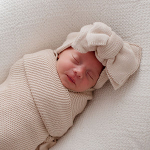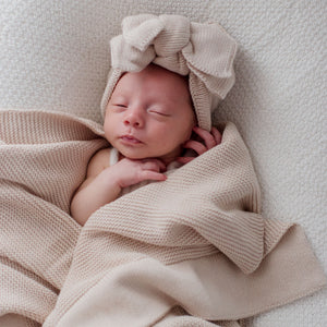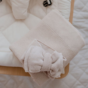 Cozy Essentials Set – Knitted Baby Blanket & Oversized Topknot