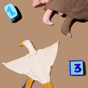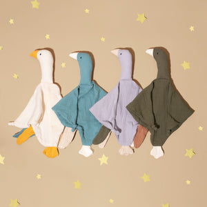 Give your little one the gift of a special companion with muslin baby goose security comforter blanket. This baby soothing blanket is also a little plush toy, making it the perfect combination for teething babies who need comfort and a safe item to chew on.