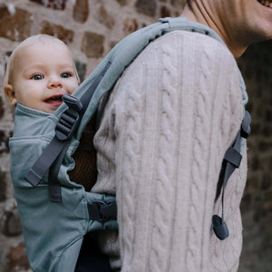 The Boba X can be worn on the front or back. It has super comfortable shaped straps and a generous waist band, meaning the carrier will fit all sizes of parents.