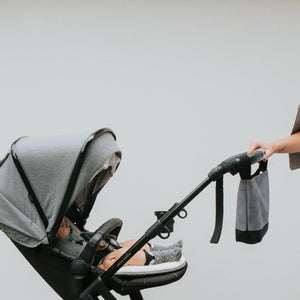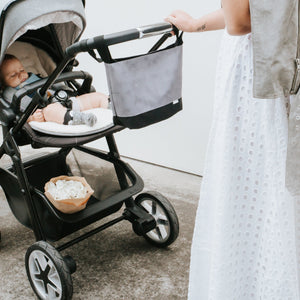 This stylish bag clips onto the handle of your pram ensuring your essentials are within easy reach. No more digging around under the pram looking for your keys or purse or fishing through your large nappy bag to find what you need.