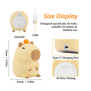 Cute and Functional: The kids' cute capybara nightlight combines an adorable capybara design with soft, soothing light, making it a perfect companion for kids at bedtime.