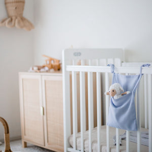 Linen organizers make storing your baby's stuff simple! The cot organizer is a great storage solution for toys, nappies, clothes, and other baby essentials. Tie the organizer to cot bars, railings,...
