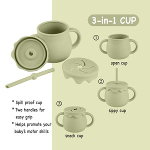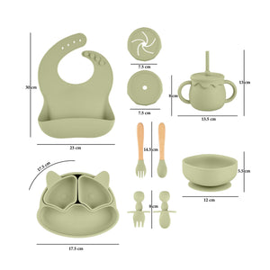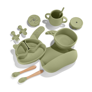 Survive the "chuck-it-on-the-floor" stage with one of our silicon mealtime feeding sets.