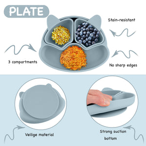 The built-in suction base on the bowl and plate securely adheres them to any smooth surface — from highchair trays to the dining table. Divided sections mean your little won't have to "chase" food around the plate with the spoon.