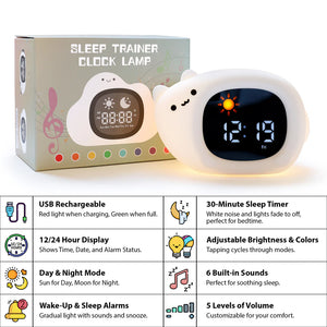 Sleep Trainer Clock: Educational Nightlight, Alarm Clock with White Noise Machine - Cat