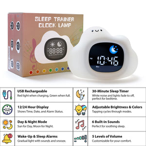Sleep Trainer Clock: Educational Nightlight, Alarm Clock with White Noise Machine - Cloud
