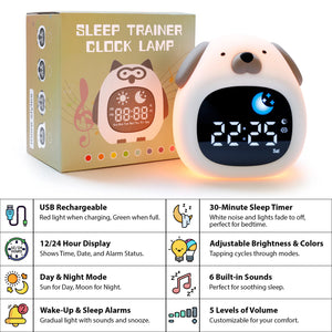 Sleep Trainer Clock: Educational Nightlight, Alarm Clock with White Noise Machine - Puppy