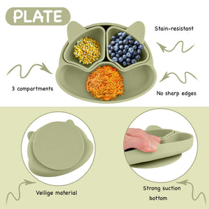 The built-in suction base on the bowl and plate securely adheres them to any smooth surface — from highchair trays to the dining table. Divided sections mean your little won't have to "chase" food around the plate with the spoon.